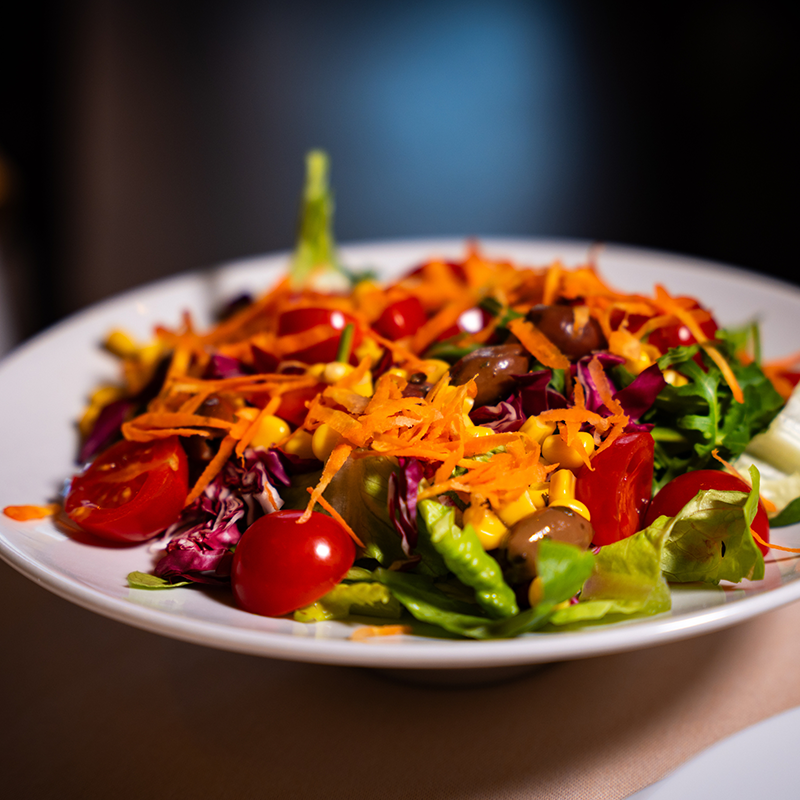Insalata Mista Lattuga romana, radicchio, rucola, olive taggiasche, pomodori, mais