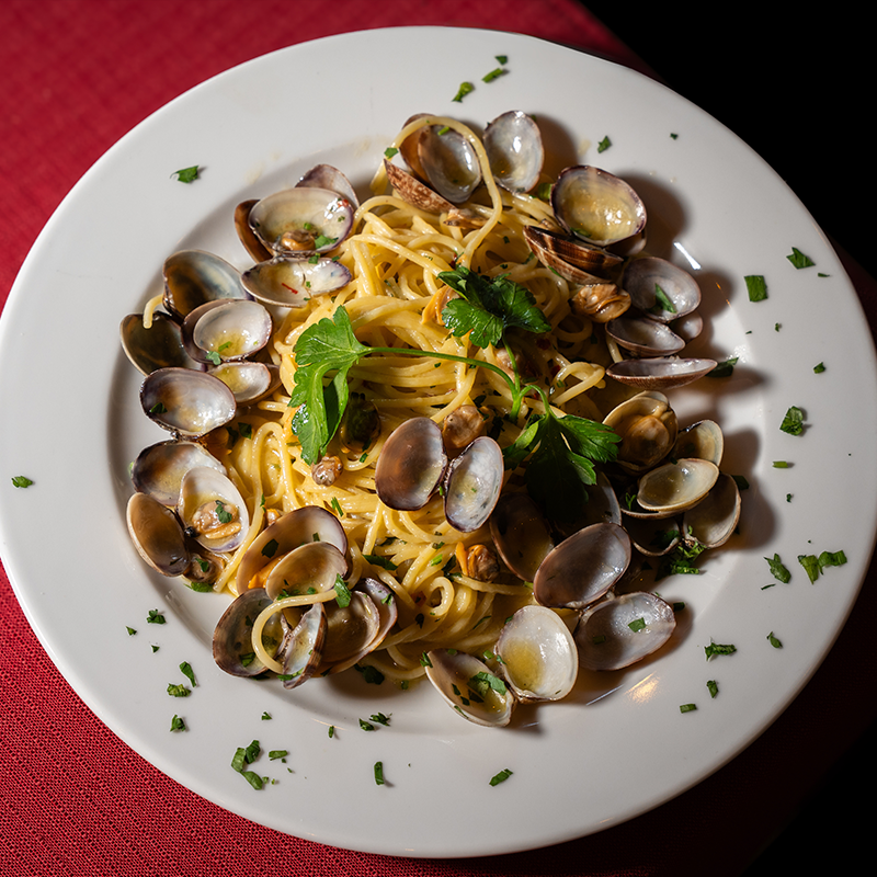 Spaghetti with clams, extra virgin olive oil, crushed red pepper and white wine sauce.