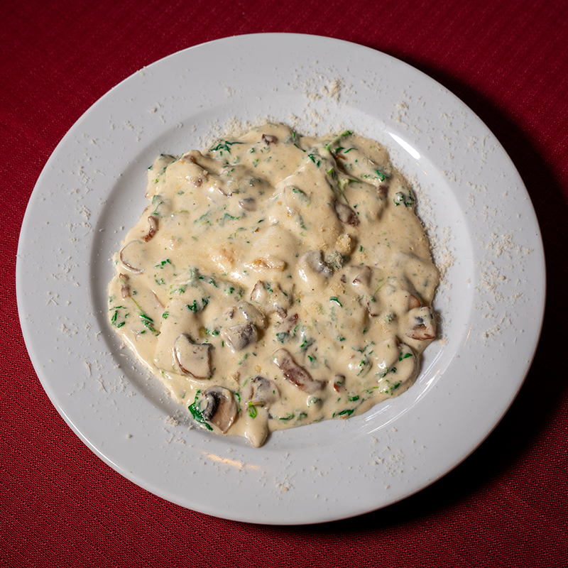 Beef stripes served with gorgonzola (blue cheese) cream sauce